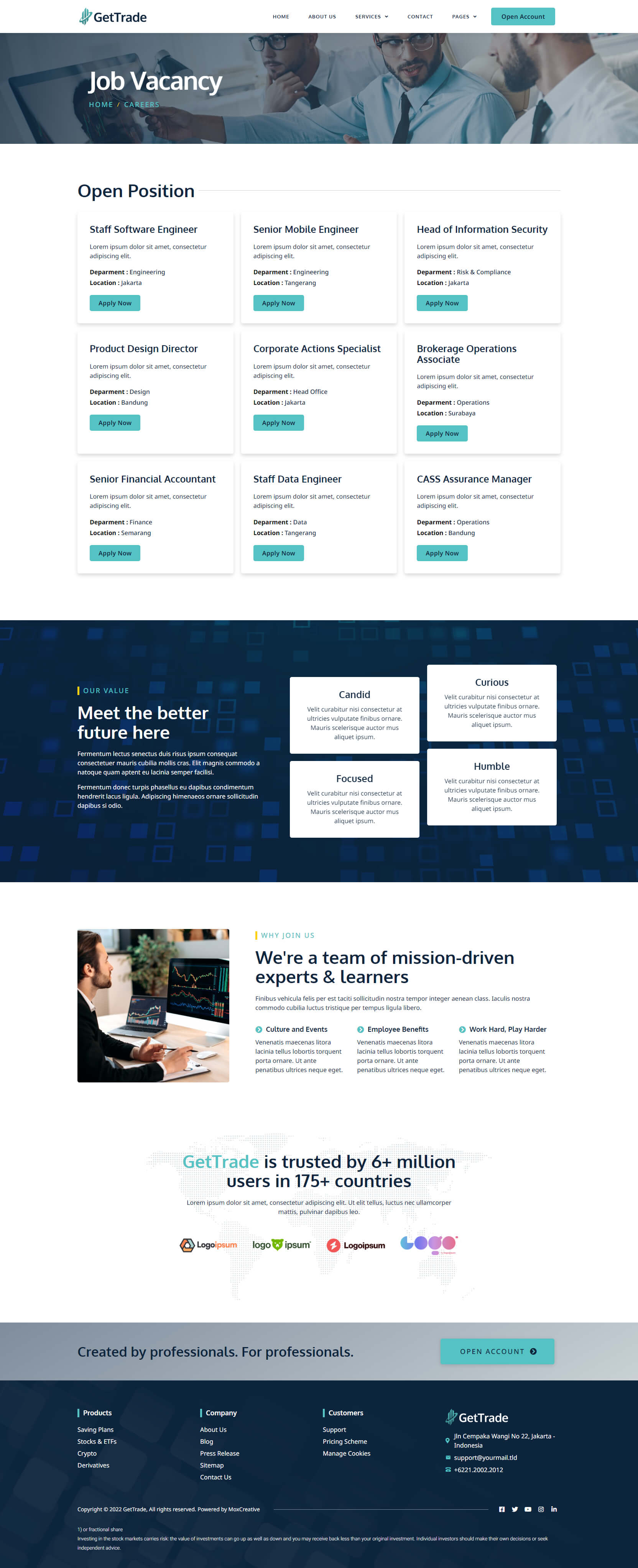 Job Vacancy Home Careers Open Position Staff Software Engineer Lorem ipsum dolor sit amet, consectetur adipiscing elit. Deparment : Engineering Location : Jakarta Apply Now