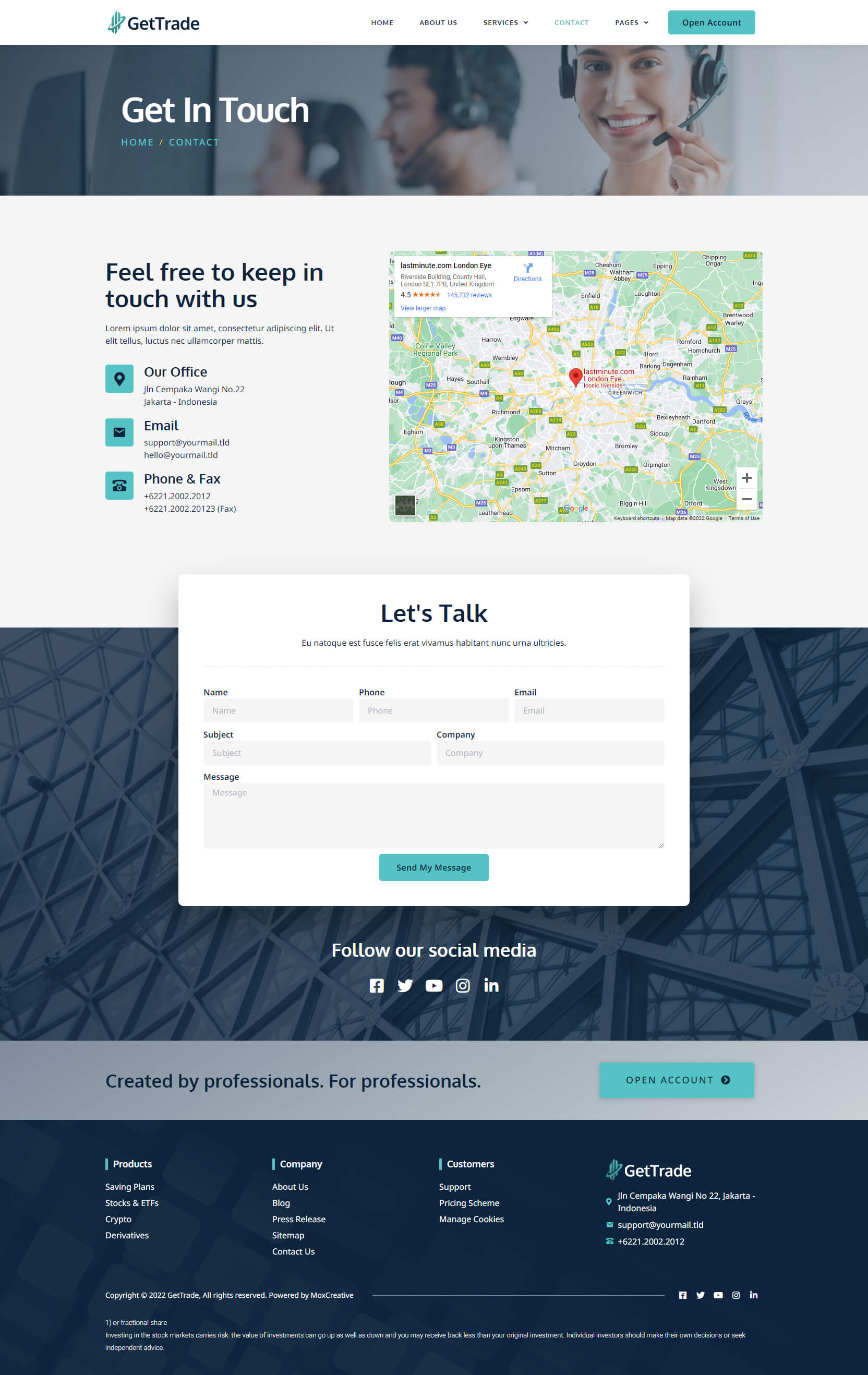 Get In Touch Home Contact Feel free to keep in touch with us Lorem ipsum dolor sit amet, consectetur adipiscing elit. Ut elit tellus, luctus