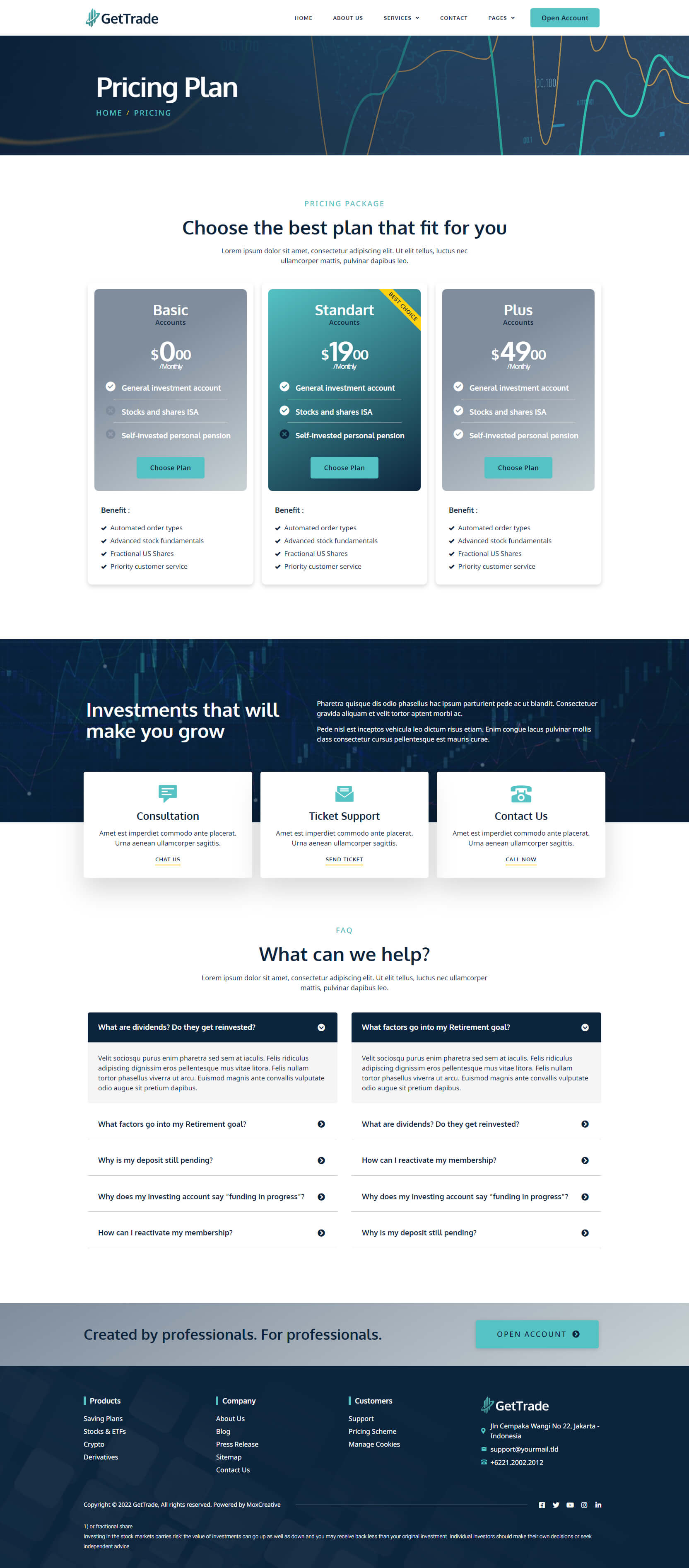 Pricing Plan Home Pricing Pricing Package Choose the best plan that fit for you Lorem ipsum dolor sit amet, consectetur adipiscing elit. Ut elit tellus,